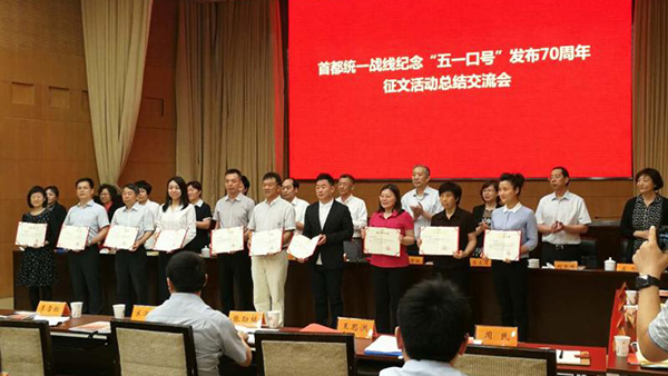 致公党北京市委非常重视纪念中共中央发布“五一口号”70周年活动,专门召开主委会研究制订方案。特别是对征文活动,专门下发通知,自上而下层层发动,领导、骨干带头撰写,确保了征文的数量和质量。各区级组织把征文活动视作思想教育重要载体,坚持把参加征文活动与“不忘合作初心,继续携手前进”主题教育活动紧密结合起来,通过征文推动教育开展,取得了征文和教育的双丰收。