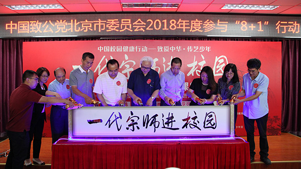 “一代宗师”进校园系列活动是2018年致公党北京市委落实“8+1”行动、支持门头沟区文化发展的一项重要活动,计划在门头沟大峪一小、首师大附中永定分校、大峪二小、三家店小学、京师实验中学、大峪中学、新桥路中学、斋堂中学、妙峰山民族学校、门头沟区少年宫等10所中小学校开展。