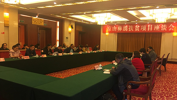 12日下午,调研组一行与中共凉山州委和政府相关部门负责同志就凉山彝绣扶贫项目进行了座谈交流。会上,调研组成员为彝绣产业发展提出建设性意见和建议。凉山州副州长何绍忠表示,希望调研组持续为凉山彝绣产业发展提供智力支持,期待企业家在充分考察对接的基础上与州内企业开展务实合作,助推凉山脱贫攻坚。