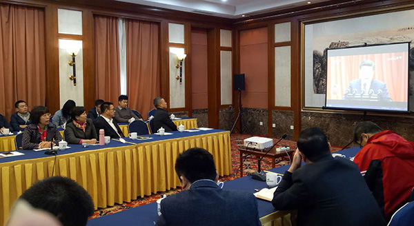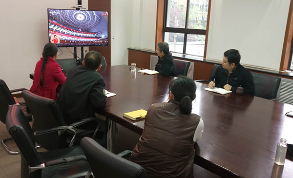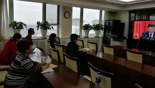 石景山区工委组织党员在区工委会议室收看中共十九大开幕会