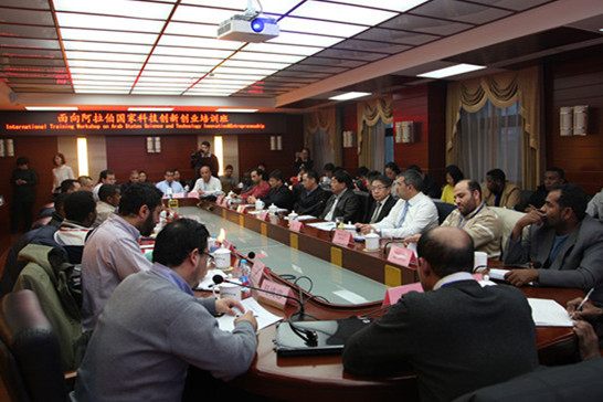 “面向阿拉伯国家科技创新创业培训班”由科技部主导,中国—阿拉伯国家技术转移中心、阿拉伯科技与海运学院联合主办,中国—阿拉伯国家青年创业园管委会承办。致公党北京市委作为支持单位,安排了培训班在京期间的座谈和考察活动。此次培训时间从2016年12月24日至2017年1月8日,在银川和北京两地举办,20余名学员来自埃及、摩洛哥、苏丹及伊拉克等国家。培训班通过开展专题讲座、举办创新创业论坛及组织考察调研等形式,帮助学员学习和了解中国在推动青年创新创业领域的经验,促进中阿双方科技交流与合作,更好地服务“一带一路”建设。