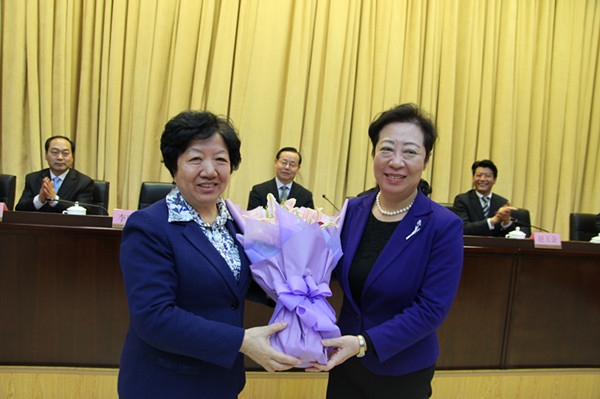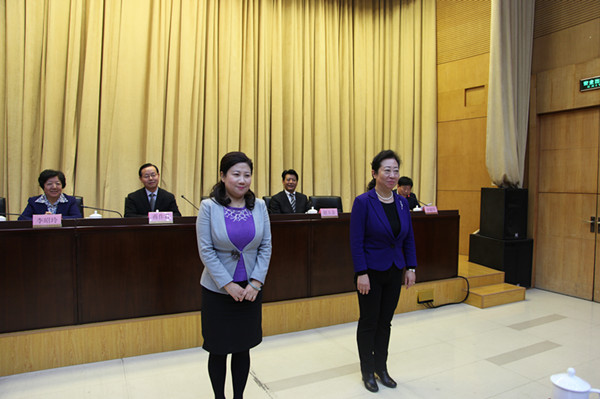 新当选主委、副主委与委员们见面 (右起:闫傲霜、董晓莉)