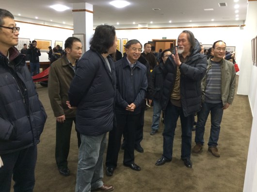 2015年12月6日,三人行——杨邦杰、魏殿松、李立祥书画求教展在北京澄怀美术馆开幕。全国政协常委、政协教科文卫小组副组长、中宣部原副部长胡振民,致公党北京市委专职副主委谢朝华、秘书长刘学增,著名作家、中国国家画院创研部主任、中国致公画院常务副院长纪连彬,著名画家、作家鲁光等出席。中国美协分党组副书记、秘书长徐理发来贺电祝贺。开幕式由北京电视台主持人文文主持。 杨邦杰现为致公党中央副主席,全国人大常委,是知名的农业专家。同时,业余爱好颇多,音乐、摄影、书法、绘画等,是中国摄影家协会会员 。其中绘画小品最富有趣味和哲思,被著名画家鲁光先生赞为“小画言大志”。出版了个人书画集《水墨写思考》。这次展出的作品是来自生活,接地气的画作,如“鸟要一棵树,人要一间房”,又如“猪要放养,稻法自然”等,这些小品画和题字无不反映出这位农业专家和参政议政者的智慧、理念、思想和社会责任。著名花鸟画家、国家画院创研部副主任邢少臣观看画展后由衷地表示“花鸟画家很多,但能有杨邦杰副主席这样的胸怀、这样的经历和这样的思考的人很少。”中宣部原副部长胡振民感言“摒弃江湖气,回归虚怀心。展出曰求教,当世有几人?” 魏殿松在故宫博物院工作,业余时间学习研究故宫馆藏碑帖。文学艺术界的朋友称魏殿松练书法很有章法,起点高路子正,远学晋唐,近学启功,特别能借鉴“馆阁体”风格,清新高雅,是当代倡导与传承皇家“馆阁体”的代表人物。 李立祥先生是位曾下乡到草原的老知青,毕业于内蒙古师范大学美术系。回北京后长期在雍和宫工作。他的画作继承传统,笔墨凝神,“真正把大草原搬到了北京”,他的画是他心灵与草原沟通的路,画笔与雍和宫、草原的神通和对语,辽阔、宁静、沉寂、厚重,又充满生机。 杨邦杰在讲话中对莅临现场的各位领导、书画家、新闻界的朋友及主办方表示感谢,并希望大家对此次求教展提出宝贵意见。致公党北京市委专职副主委谢朝华代表市委讲话,感谢杨邦杰副主席及其他两位艺术家给大家带来的艺术享受,感谢参会的书画家和致公党党员,并预祝书画求教展圆满成功。 “三人行,必有我师焉”。本次画展共展出了杨邦杰、魏殿松、李立祥书画作品近60件,三位书画家抱着虚心学习的态度,希望通过此次书画求教展诚恳地向同行们学习并得到指导。 此次展览由北京玉英雅集文化传播有限公司主办,得到了中国致公党中央宣传部、致公党北京市委的指导和帮助,以及澄怀美术馆、首都博物馆画院、中国书画收藏家协会、北京东联盛世宝文化有限公司的大力支持。