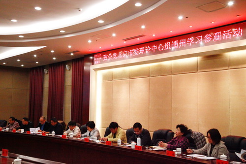 2015年11月11日,为切实学习理解和贯彻落实中共中央十八届五中全会、中共中央统战工作会议和中共北京市委统战工作会议精神,致公党北京市委理论中心组在通州会议中心,组织了学习参观活动。参加学习的同志先后参观了通州新城沙盘,听取了通州区北京行政副中心建设情况汇报,请致公党北京市委委员、北京城市规划设计研究院详细规划研究所所长许槟对北京行政副中心详细规划进行了解读,并与通州区领导进行了座谈交流。