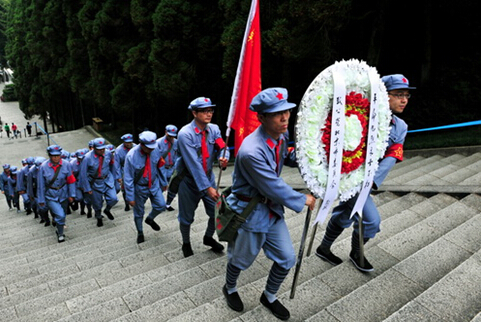 学员们在井冈山革命烈士陵园向革命先烈敬献花圈