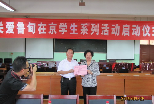 | 2015年9月26日,致公党北京市委与首都科技志愿服务联合会在北大附属实验中学联合举办关爱鲁甸在京学生系列活动启动仪式,共同为鲁甸地震受灾地区的同学们奉献爱心。致公党北京市委主委李昭玲、致公党云南省委主委李嵘,北京市科委主任、致公党北京市委副主委闫傲霜,北京市科委党组成员、北京市科技协作中心主任季小兵,致公党北京市委秘书长刘学增,致公党云南省委秘书长杨萍,北大附属实验学校执行校长吴清林、副校长马海印等出席活动,致公党北京市委专职副主委谢朝华主持仪式。