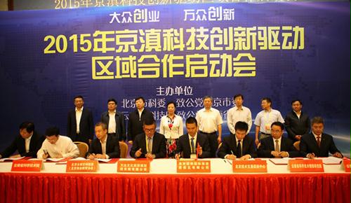 | 2015年9月20日,北京市科委、致公党北京市委、云南省科技厅、致公党云南省委共同主办的2015年京滇科技创新驱动区域合作启动会在昆明隆重举行。致公党北京市委副主委、北京市科委主任闫傲霜,云南省科技厅厅长龙江,昆明市委书记程连元等领导出席大会。致公党云南省委主委、省侨联主席李嵘主持大会。首都创业导师代表,首都创新大联盟及联盟成员单位、北京国际技术转移机构、科技企业孵化器及创新企业等30余家机构代表,以及来自云南科技企业、孵化器、科研院所等150余位代表参加大会。 云南省科技厅厅长龙江在致辞中表示,近年来北京与云南的科技合作日益密切,北京市科委与云南省科技厅积极推动科技入滇,在推进科研平台、科研成果、创新型企业、科技人才等四个落地方面广泛开展实质性合作。随着国家“一带一路”和“长江经济带”重大战略的实施,结合习近平同志对云南新的定位和要求,要充分利用北京全国科技创新中心的辐射带动作用和云南面向南亚、东南亚的区位优势,积极推动首都科技创新资源向云南和南亚、东南亚国家技术转移。发挥北京在电子信息、装备制造、生物医药等方面的科技优势,与云南的资源优势和产业发展形成互补。京滇区域合作活动为两地企业、科研院所在技术转移、科研成果转化等方面的合作与发展搭建了良好的平台,希望双方能在这个平台上真正实现合作共赢。 闫傲霜作“探索特色鲜明、互利共赢的跨地区科技合作之路”主题发言。她指出,北京作为全国科技创新中心,承载着区域创新合作、国际技术合作的重要功能,主动服务和融入国家发展战略,是北京的责任所在。为加快落实两地四方签署的创新驱动战略合作协议和万钢部长指示精神,今年3月以来,两地四方开展了一系列紧密的互访和考察,进一步明确了2015年推进合作的重点工作,围绕技术转移对接、创新人才培养、文化科技融合创新、国际技术合作与新产品推广应用等方面务实推进科技合作。“相信在我们的共同努力下,京滇科技合作一定能走出一条特色鲜明、互利共赢的跨地区科技合作之路,取得更加丰硕的成果,为协同创新创造新的模式与经验。”