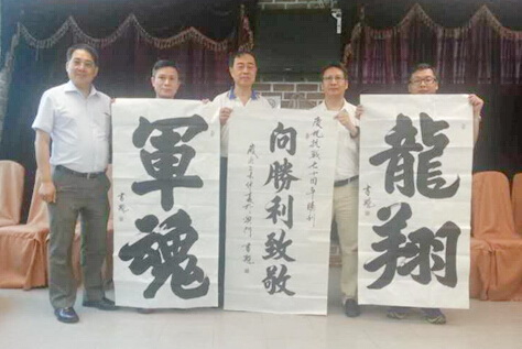 | 由中国(澳门)致公协会主办的“庆祝致公党成立九十周年、反法西斯抗战胜利七十周年、澳门特别行政区成立十六周年——‘向胜利致敬’书画联展”于2015年7月31日至8月2日在澳门综艺馆举办。 此次书画联展邀请了十三个省市的致公党组织、台湾中国新洪门党及澳门文化艺术学会等参与,共展出百余幅优秀书画作品。致公党北京市委广泛发动党员参与,市委海联会副主任郑婕妮积极联络接洽,共送展黄绍勋、道书魁等党员创作的十幅书画作品,其中道书魁亲赴澳门致公协会现场泼墨,其作品被用作本次展览的宣传用字,充分体现了致公党北京市委与澳门致公协会的深情厚谊。