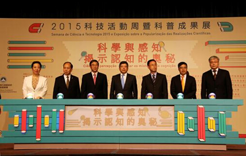 闫傲霜与澳门特别行政区政府运输工务司司长罗立文先生等共同为2015科技活动周曁科普成果展揭幕 |