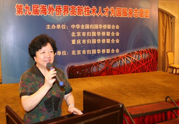 图为李昭玲在北京市侨联品牌活动——海外侨界高层次人才为国服务团活动上致辞