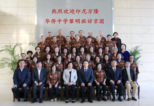 | 2015年5月11日晚,致公党北京市委、北京市侨联在北京市民主党派人民团体大楼联合接待了印尼万隆华侨中学黎明班访京团。致公党北京市委主委李昭玲,北京市侨联主席荣洋,致公党北京市委专职副主委谢朝华,北京市侨联副主席马坚、陈杰,致公党北京市委副主委、市侨联副主席高杰等出席活动。