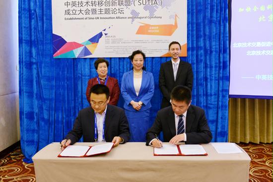 闫傲霜在致辞中说,北京市围绕建设科技创新中心的目标,正在不断提升科技创新环境与实力。要实现这一目标,必须要向世界开放,加强国际合作。中英的科技合作,是最有优势和最有前途的。作为全国科技创新中心,北京有条件,也有基础以科技创新为纽带与英国相关方面建立协同发展的合作关系。 闫傲霜表示,成立“中英技术转移创新联盟”,有助于建立新型合作伙伴关系下的科技创新服务体系,推动各领域互利合作,引领两国关系发展。通过两国的优势互补,可以为中国面临的环境、产业转型和城市的可持续发展提供重要的科技支撑。希望通过“中英技术转移创新联盟”,集聚中英科技创新资源,建立创新伙伴关系,共同推动制度创新、模式创新、联合创新,为中英合作开辟更加广阔的天地,进一步深化两国在多领域的交流与合作。 参会嘉宾就中英科技创新合作的突出问题及共同关切进行了研讨,开展英国重点产业集聚区介绍及项目推介、就中英开放式创新生态圈展开高端对话,并宣布“中英技术转移创新联盟”成立。 会上还进行了项目签约,海尔集团技术研发中心与北京技术交易促进中心就HOPE开放创新平台资源对接签署合作协议、北京技术交易促进中心与英国酷伍全球技术创新联盟就技术推介、人才交流等方面签署战略合作协议。 来自英国贸易投资总署、苏格兰国际发展局、英国洛桑研究院等专家、学者及企业代表一行20人,以及海尔集团、同方股份有限公司、中国卫通集团等中方代表约100人参加。
