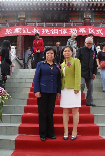 李昭玲和张红雨在张顺江铜像揭幕式上合影