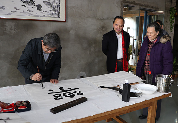 杨邦杰分别为顺义区支部和张镇政府挥毫题字,为联欢会增加了亮点。