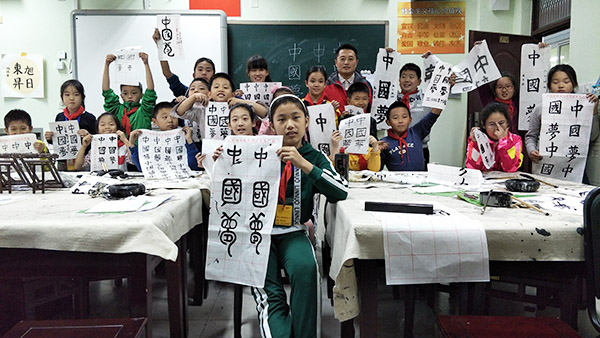2017年10月18日下午,为庆祝中国共产党第十九次全国代表大会的胜利召开,致公党东城区委党员、青年书法家安书楷,组织其青少年书法社团,开展书写中国梦专题活动。小朋友们兴高采烈,挥毫泼墨,用传统的书写方式,一笔一画,认真书写,在翰墨飘香中表达了对祖国的热爱之情。