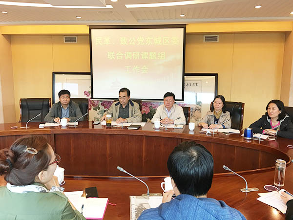 2017年10月11日下午,致公党东城区委、民革东城区委联合召开调研课题工作会,通报了联合调研的前期工作情况,确定了调研报告的主题,梳理了调研报告整体结构和各部分主要内容,部署了下一步工作。 致公党东城区委常务副主委何志才、副主委徐华锋,民革东城区委副主委谢晨、专职副主委郑欣及调研组成员参加了会议。
