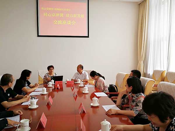 2017年9月14-15日,致公党朝阳区委副主委田新民带队赴天津滨海新区调研。 田新民一行参观了滨海新区规划展览馆、天津纺织博物馆、新北街蓝卡社区卫生服务中心,与致公党滨海新区委员会联合召开了“同心京津冀 助力新发展”座谈会,听取了致公党天津市滨海新区委员会副主委金盛霞关于组织建设、参政议政及社会服务情况,特别是“同心京津冀 助力新发展”实践活动情况的介绍,并围绕助力京津冀协同发展进行了交流。 近期,朝阳区委和滨海新区委员会将就发展交通体系、优化留学归国人员创业环境两项调研开展合作;朝阳区委还将组织北京华商会企业家赴滨海新区考察座谈,努力促成北京企业到滨海新区投资。