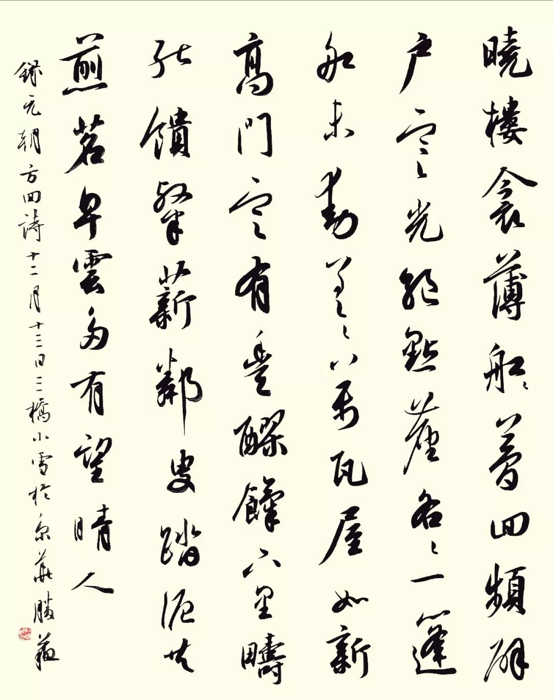 《十二月十三日三桥小雪》 元·方回 晓楼衾薄梦回频,辟户寒光绝点尘。 各各一篷船未动,差差万瓦屋如新。 高门定有丰醪(lao)饩(xi),下里畴能馈粲(can)薪。 邻叟踏泥共煎茗,早云多有望晴人。