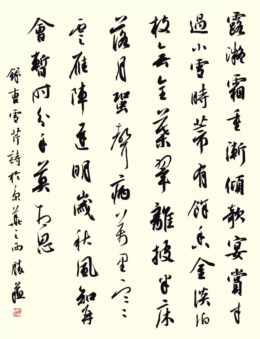 《小雪作》 宋·张嵲(nie) 霜风一夜落寒林,莽苍云烟结岁阴。 把镜渐无勋业念,爱山唯驻隐沦心。 冰花散落衡门静,黄叶飘零一迳(jing)深。 世乱身穷无可奈,强将悲慨事微吟。