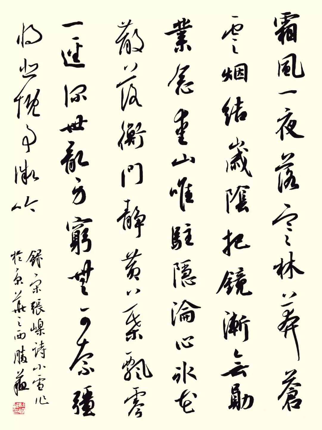 《小雪作》 宋·张嵲(nie) 霜风一夜落寒林,莽苍云烟结岁阴。 把镜渐无勋业念,爱山唯驻隐沦心。 冰花散落衡门静,黄叶飘零一迳(jing)深。 世乱身穷无可奈,强将悲慨事微吟。