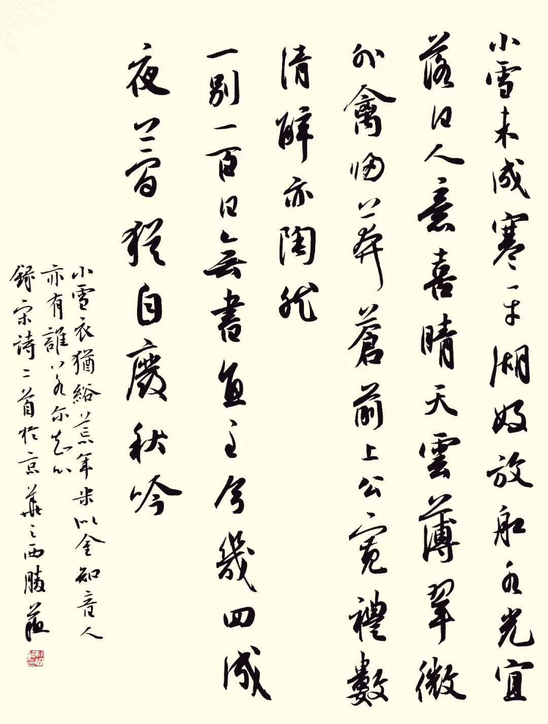 《晏相公湖上泛舟赋》 宋·韩维 小雪未成寒,平湖好放船。 水光宜落日,人意喜晴天。 云薄翠微外,禽归莽苍前。 上公宽礼数,清醉亦陶然。 《忆赵紫芝》 宋·徐照 一别一百日,无书直至今。 几回成夜梦,犹自废秋吟。 小雪衣犹綌(xi),荒年米似金。 知音人亦有,谁若尔知心。