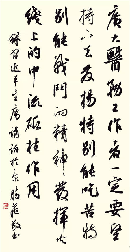 广大医务工作者一定要坚持下去,发扬特别能吃苦、特别能战斗的精神,发挥火线上的中流砥柱作用……